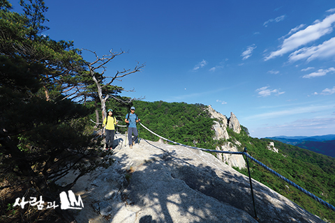 »õ³²¹ÙÀ§ ²À´ë±â¿¡¼ ¹Ù¶óº¸´Â Ä®¼¼ºÀ ¿ª½Ã Àý°æÀÌ´Ù. ³Ê¸¥ Çϴú®°ú »ÏÁ·ÇÑ Ãдë¹ÙÀ§µµ À§¾öÀÌ ³ÑÄ£´Ù. ¾ÈÀüÀ» À§ÇØ ¼³Ä¡ÇÑ ·ÎÇÁ ³Ê¸Ó ¾Ïº®µî¹ÝÀÌ ³¡³ª´Â ÁöÁ¡¸¶´Ù °íÁ¤È®º¸¹°ÀÌ ¹Ý¦ÀδÙ. ¡°Àú°Ô °ÅÀÎ ¹ßÀÚ±¹ÀÌ¿¡¿ä.¡± À¯ÇöÁ¾¾¾°¡ »õ³²¹ÙÀ§ Á¤»óºÎ ¾Ï¼® À§¿¡ ±æÀÌ 70cm, Æø 30cm·Î µÕ±Û°Ô ÆÄÀÎ ºÎºÐÀ» °¡¸®Å²´Ù. ¡°ÀÌ°Ô ¿À¸¥¹ßÀÌ°í ³»µóÀº ¿Þ¹ßÀº Àú±â Ⱦǻ꿡 ÀÖ´Ù°í ÇÕ´Ï´Ù.¡± ´«À» µå´Ï ¸Ö¸® ºÏÂÊÀ¸·Î ȾǻêÀÌ ¿ì¶ÒÇÏ´Ù. ³¡¾øÀÌ ³ì»ö ÆÄµµ°¡ ÀÏ··ÀÌ´Â »êÀÚ¶ô À§·Î ÇÏ¾á ±¸¸§ÀÌ ºü¸£°Ô ´Þ·Á°£´Ù. ±× ÀåÄèÇÑ ¸ð¾çÀÌ ¿ë °°±âµµ »õÀÇ ³¯°¹Áþ °°±âµµ ÇØ¼ Àü¼³ ¸¹Àº »ê¿¡ ÆÜ ¾î¿ï¸°´Ù.